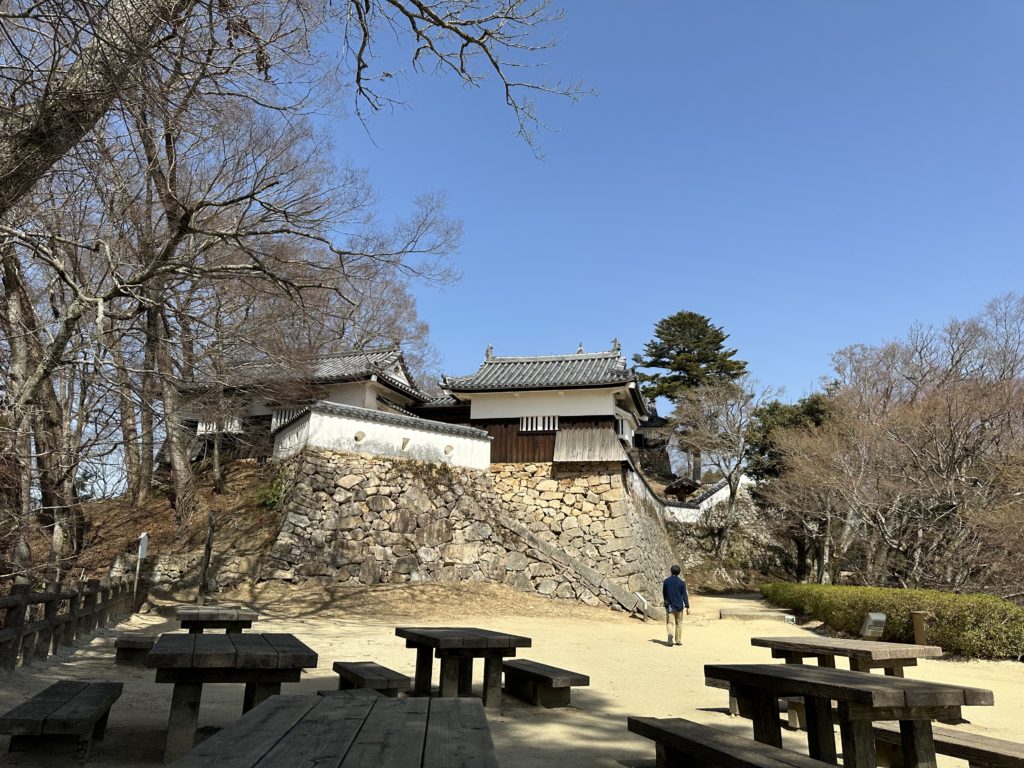 お城の手前の広場には、お弁当を食べるベンチもあります。※少し下にトイレ有 飲料自販機無